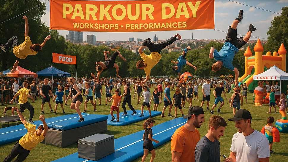💥 Live exhibitions by Vova , one of the biggest Czech parkour stars and other top athletes